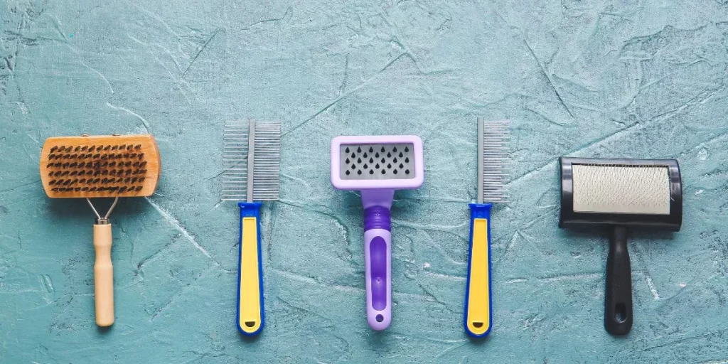 These brushes work well on different coat types, but they’re particularly useful for long-haired breeds prone to matting. To use a slicker brush properly, start by gently brushing your dog’s fur in the direction of hair growth, focusing on small sections at a time. Be cautious around sensitive areas like the belly, ears, and tail.